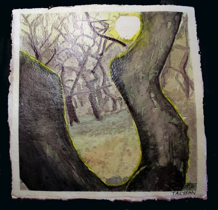 Coed Tal-y-Fan is a designated Site of Special Scientific Interest and a Special Area of Conservation (SAC) as an example of an old sessile oak woodland. Quercus petraea, in Cymraeg – Derw Digoes ( Sessile or durmast oak ) is one of two Oaks that are native to the UK, petraea meaning “of rocky places”. It has been designated as the Welsh national tree, hence referred to as the Welsh Oak! The Sessile Oak leaves are broad with evenly lobed leaves that are stalked and acorns that are stalk-less (sessile) hence the common name.