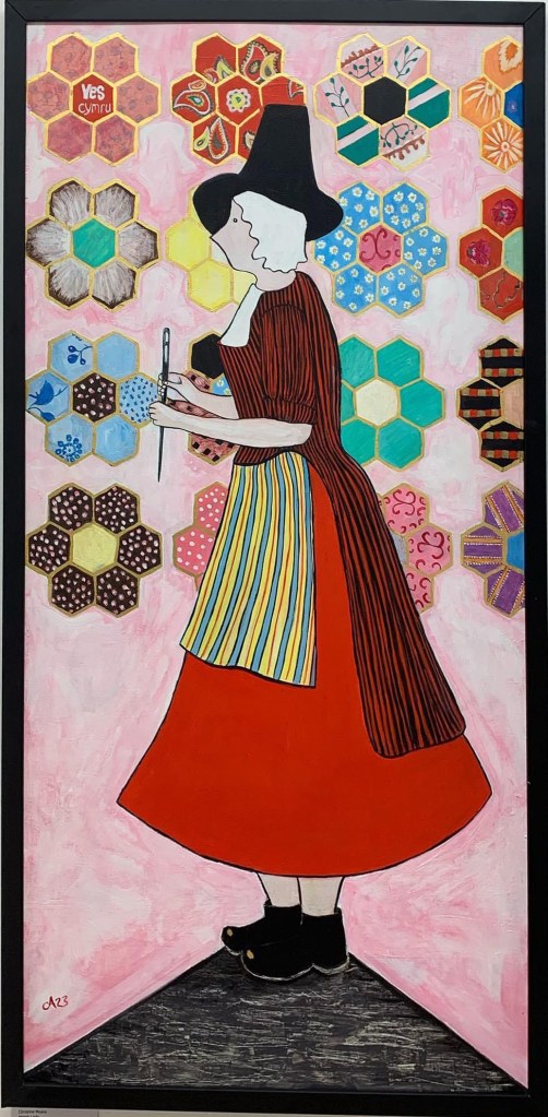 This is a mixed media on board! 4ft x 2ft- Acrylic, Oils and Goldleaf! and forms a pair with the ‘Welsh Lady!