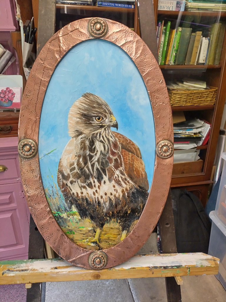 Oil and Goldleaf on board mounted in an antique brass and copper frame. Collection in person, or Postage will be an additional cost, depending on where the item has to be delivered to!